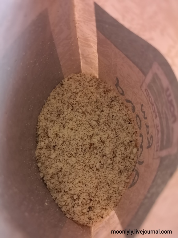 В составе миндальной муки Now Foods только измельчённый миндаль. После вскрытия упаковки производитель рекомендует хранить пакет в холодильнике. Я храню в тёмном шкафу.