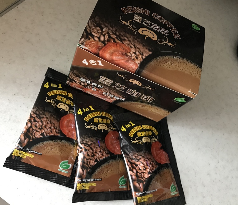о кофе. Кофе на вкус похож на тот, что продают у нас 3 в 1. Я такой люблю, хоть и пользы от него маловато))) А тут с грибочком)))