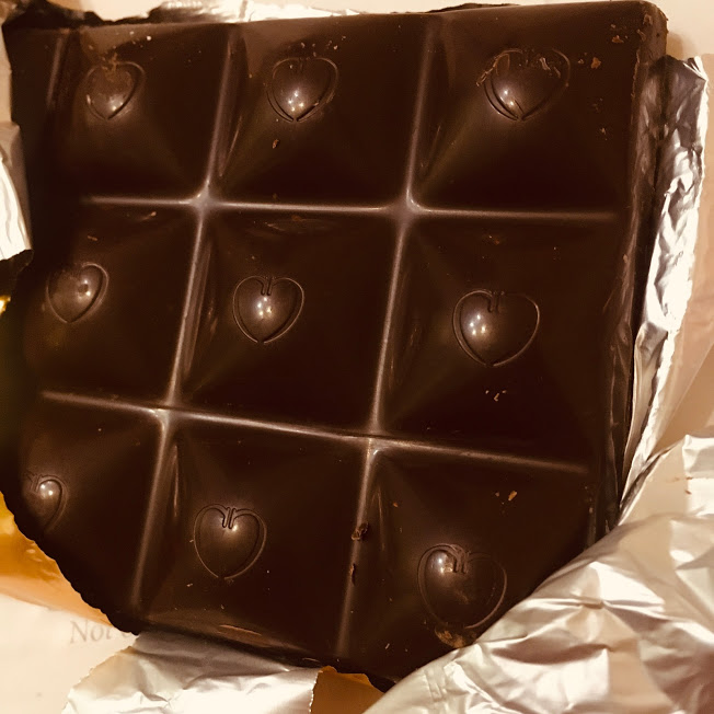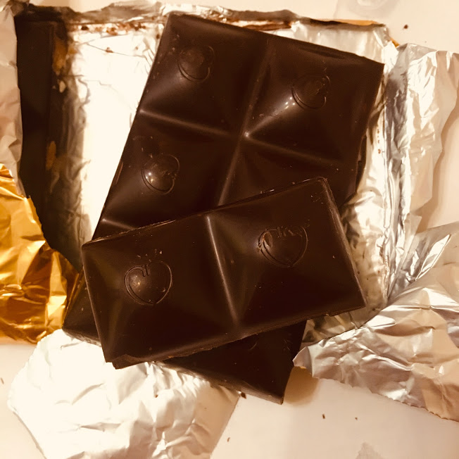 вкус-это нечто сладко-соленое, с нотками карамели, ну просто невозможно описать словами, хочется сесть у окна зимним вечером, попивать кофе в прикуску с этим шоколадом, любоваться спешащими по своим делам людьми, копающими туннели карапузами, а из Алисы тихонько будет звучать Трофим: