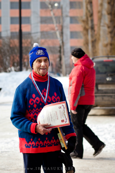 А это самый взрослый участник лыжного забега — Семен Михайлович.