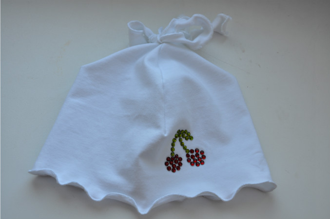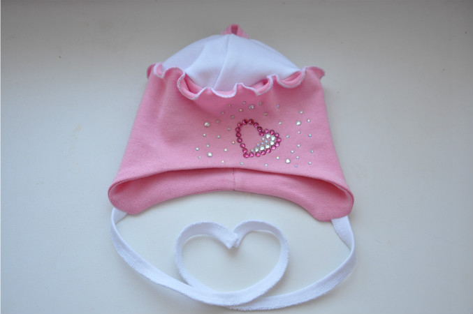 4. Однослойная шапочка для девочки. Материал - кулирка с лайкрой. Декор стразы. Размер 44-48 (обхват головы). Цена 300 руб