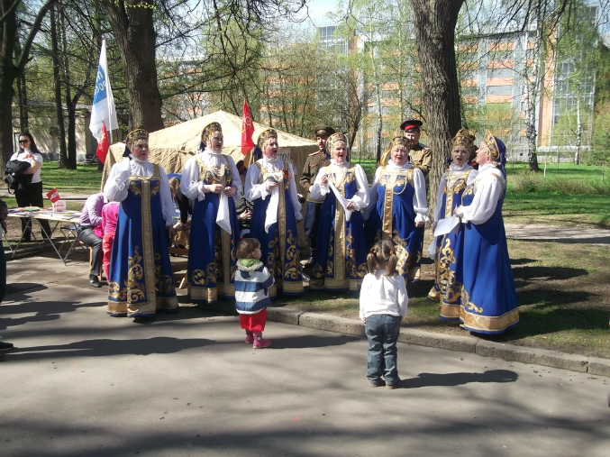 Но в этом году сын уже школьник и помоему уже более осмысленно стал относиться к этому празднику, в школе у них была торжественная линейка, встреча с ветеранами. Задавал мне ооочень много вопросов про ВОВ. С нетерпением ждали дня Победы, смотрели познавательные передачи на "Карусели", рассматривали открытки и альбомы, читали стихи и рассказы о войне. А сам праздник решили провести в Измайловском парке.