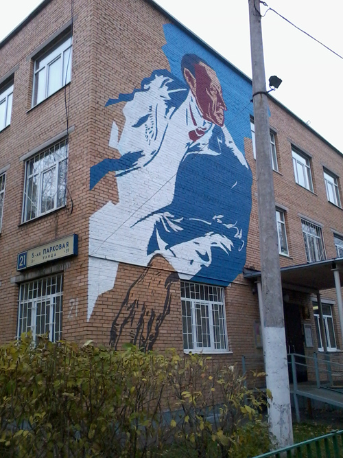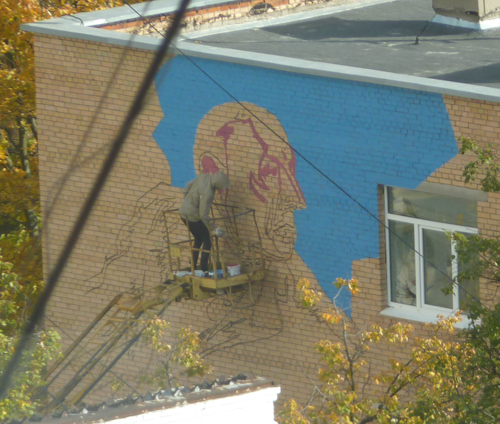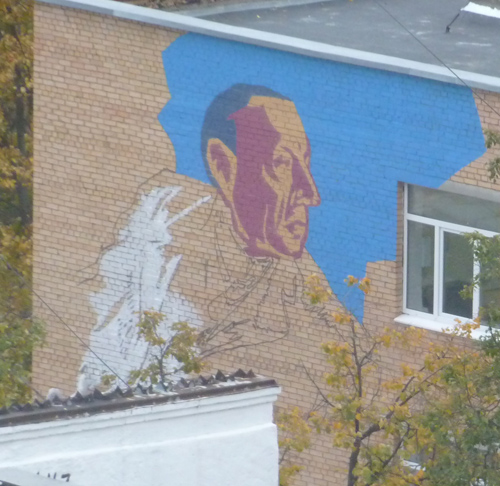 Мощно получилось. На всю стену. Правда, (прошу прощения у поклонников творчества) мне кажется дяденька весьма суровым на вид и лицезрение его ежедневно в окне меня не очень радует... а вот вид снизу, с улицы, вообще чуднОй - все ж в преспективе получается... огроооооооооомная страшная черная рука... и мааааааленькая голова.