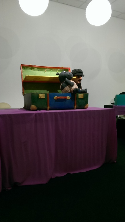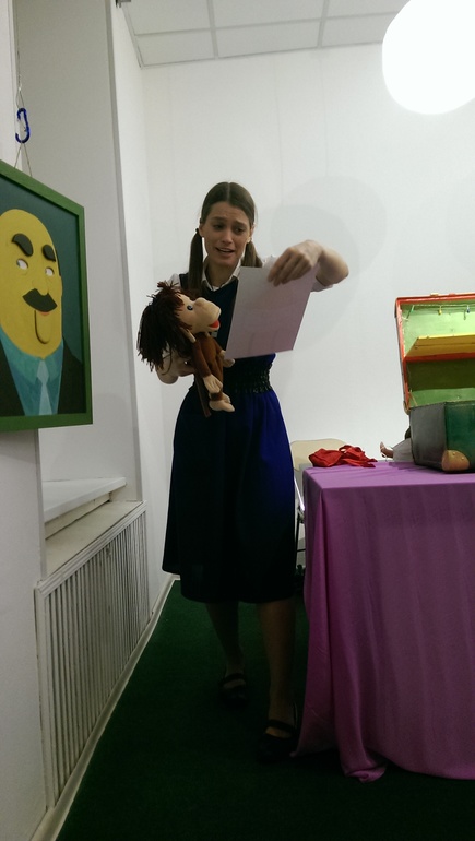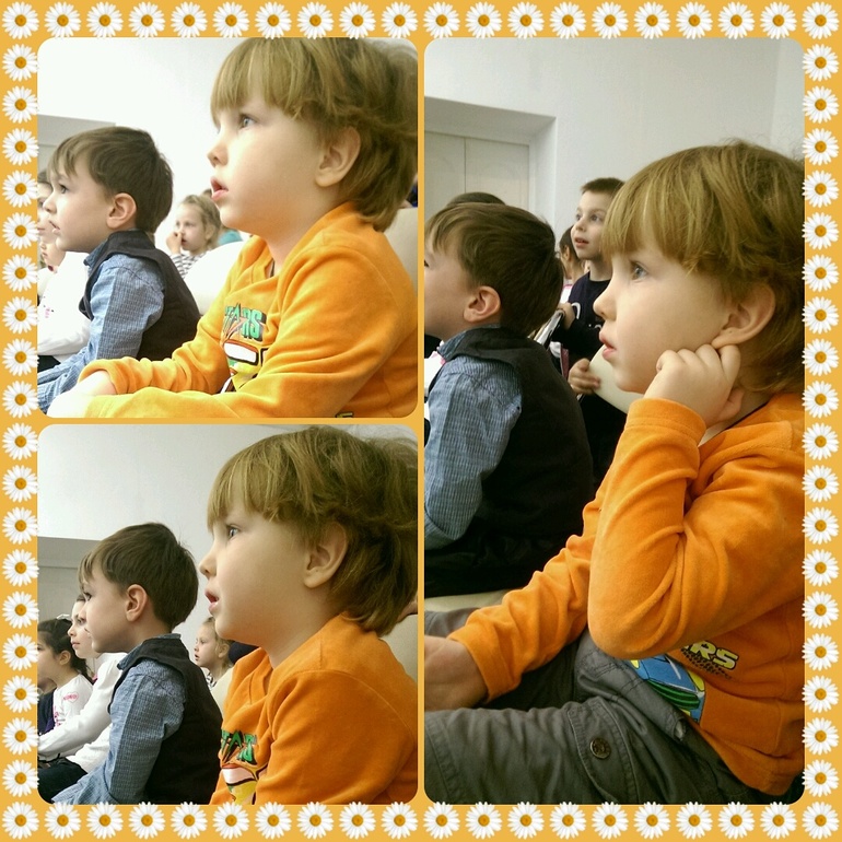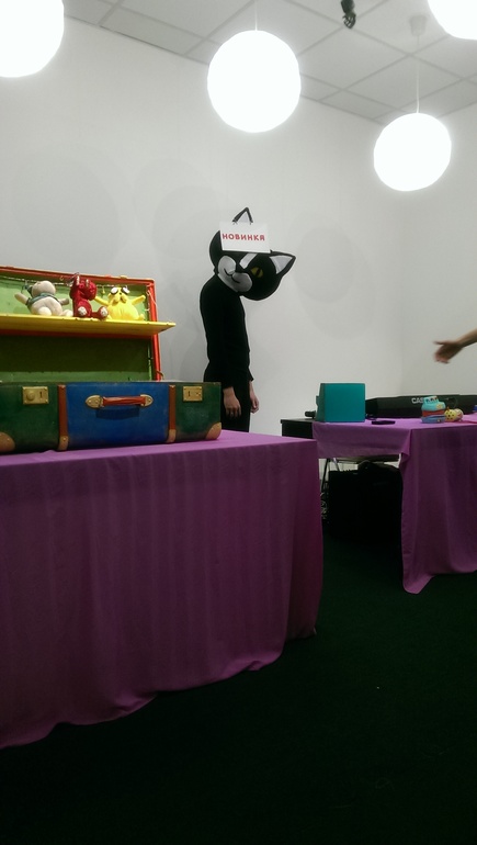 Спектакль назывался "Сказки Детского Мира". От лица продавщицы отдела мягких игрушек рассказывалась сказка про кота, которого никто не покупал, про бегемотика и нерешительную девочку, упустившую своё счастье, про двух медвежат-драчунов, про обезьянку и очень талантливую таксу, про гламурного волка, которого никто не боялся до поры до времени, про не слишком храброго охотника, про кролика, который от всех прятался, потому что он был не кролик, а зайчик и о сердитом директоре, у которого волшебным образам двигались глаза и брови. Ребята по-разному воспринимали спектакль. В основном очень шумно и активно и весело. Кое-кто забоялся, а Андрюша просидел открыв рот всё представление. Спектакль был рассчитан на детей от 3 до 9 лет. И билет стоил всего 100 рублей. Нам понравилось, обязательно сходим ещё на что-нибудь подходящее.