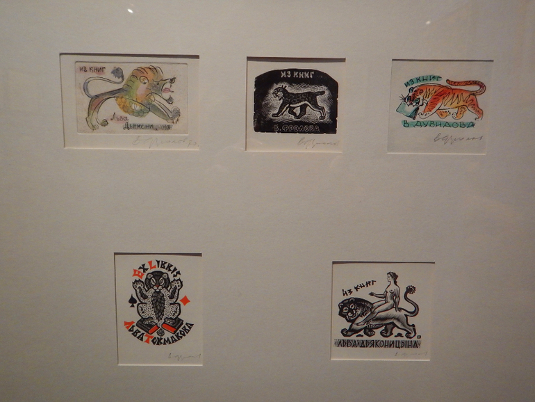 И третья незапланированная по заданию, но посещённая нами выставка - это выставка экслибрисов "Жизнь мудрого кота..."