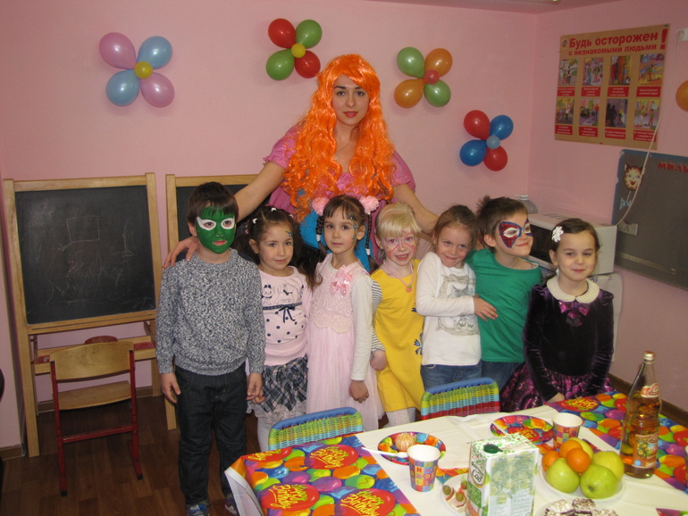 Что мне совсем не понравилось, это аквагрим. Аниматор рисовать не умела совсем. Поэтому получились довольно страшные и некрасивые рисунки. И дети ничем не занимались, пока она рисовала, просто бегали и играли в зале, а в стоимость анимации это входило.