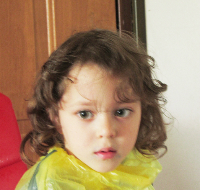 А Варя снова обстригла кудри. Спрашиваю, зачем, говорит, Захарчик хотел. Сейчас буду искать как спасти положение. Снова доча стрижена клочками. С Захарчика попроще - сразу под машинку и все. А Варю-то жалко под машинку. Не успела связать новую шляпку для хвостиков