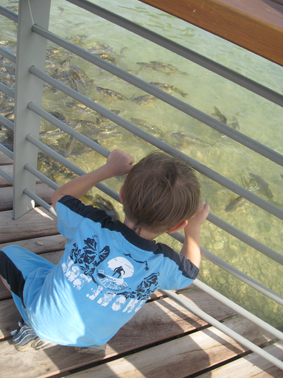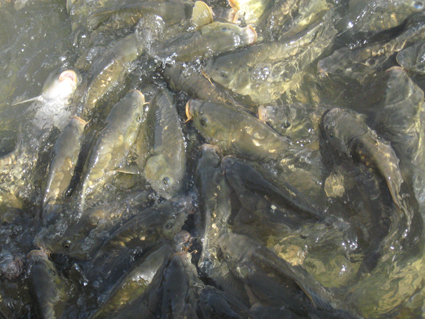 а это ДИКИЕ рыбки в пруду, которые почти как дельфины выпригивали из воды за предложенной им бамбой