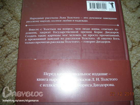 книга народных рассказов Л.Н.Толстого с иллюстрациями Бориса Диодорова. Очень хорошее издание для домашней библиотеки, иллюстраций правда немного и они черно белые, но книгу это нисколько не портит! советую купить пока есть в продаже)) книга действительно хорошая!