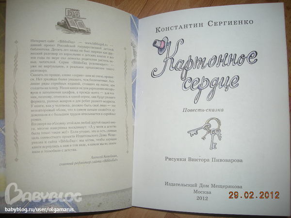 Оформление очень понравилось, формат у нее в отличии от "картонного сердца" большой ( чуть больше А4), иллюстраций очень много, книга вообще кажется такой нежной, приятной, даже корешок такой, нежно розовый, текст, бегло посмотрела, думаю не плохой, но подробно пока не вчитывалась.
