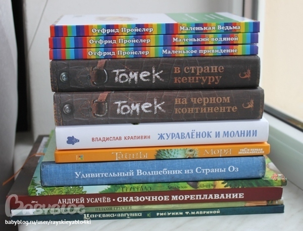 У нас теперь тоже есть Груффало и Петсон с Финдусом (пока одна книга, мне очень понравилась, хочу еще). Эти книги я не фотографировала, т.к., по-моему, они у всех уже давно есть)) "Волшебника" совсем недавно подробно показывали, "Тайны моря" я показала вместе с другими книжками серии, так что их тоже пропущу.