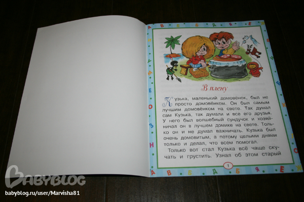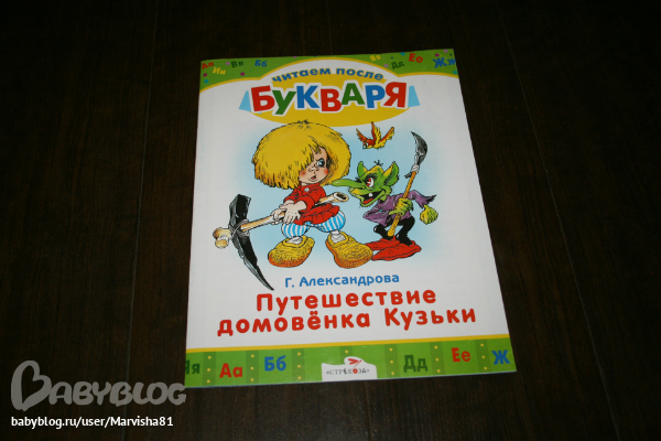 Ещё у нас появился домовёнок Кузька,только он не похож на домовёнка из мультика, но картинки красивые и книга расчитана на детей,которые уже научились читать.Максим пока Жукову Букварь осваивает только.