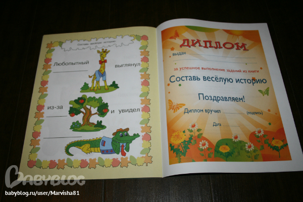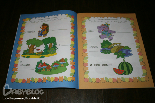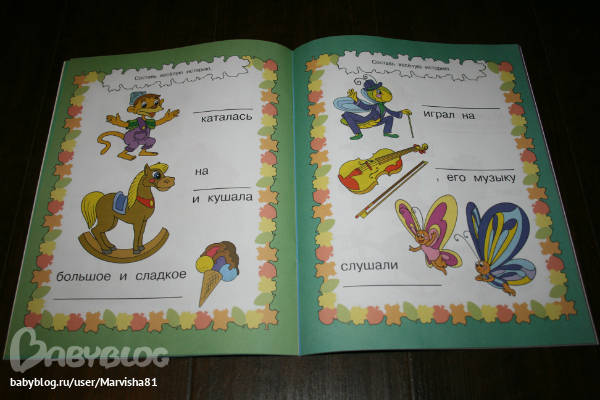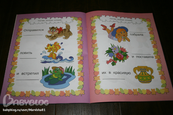 Потом мне показалось интересным приобрести книжку,по которой ребёнок может составлять свою историю. В книжке 21 история получаеться,картинки яркие и понятные для воображения ребёнка с 5 лет.