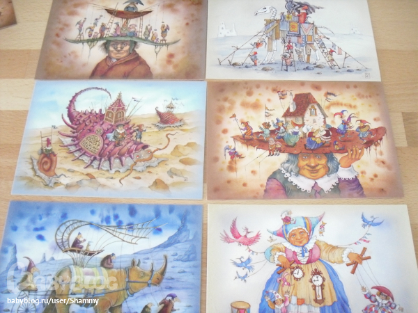 Мне нравится стиль художника. В нем и сказка, и фантазия, и... паранойя) Вот бы по этим мини-картинам сказку написать! Но пока что оборотную сторону открыток украшают строчки Блока, Гумилева, Есенина...