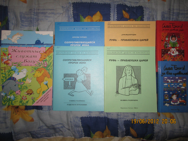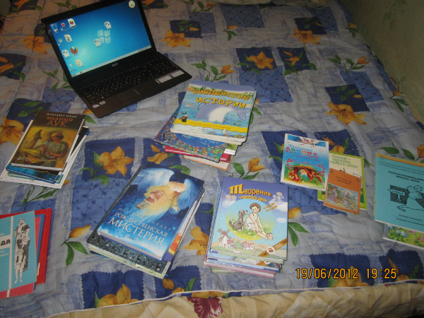 Несколько христианских книг в тонких обложках - здесь стихи, и некоторые исторические сведения (поданые доступно, для детей).