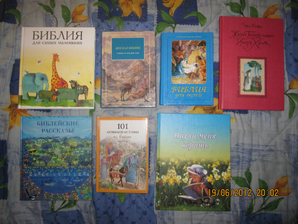 Misago обещание рассказать о наших детских Библиях, я с радостью отправилась к книжным полкам, чтобы сгрести с них всё, имеющее отношение к христианской литературе для детей. Муж, видя как я натужно отдуваюсь под тяжестью книжных стопок, с надеждой спросил: "Собираешься, наконец, выбросить половину?", на что получил категоричный, и - конечно, отрицательный ответ:)