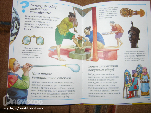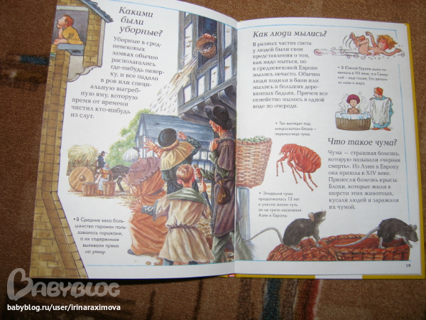 Книжечки очень тоненькие 32стр., информация очень краткая (для дошкольников). В строениях каждой теме (вопросу) выделен 1 разворот, в Рыцарях в начале тоже каждая тема (вопрос) на отдельном развороте, а далее на стринице по несколько вопросов, вообщем книги из разряда "почемучек"