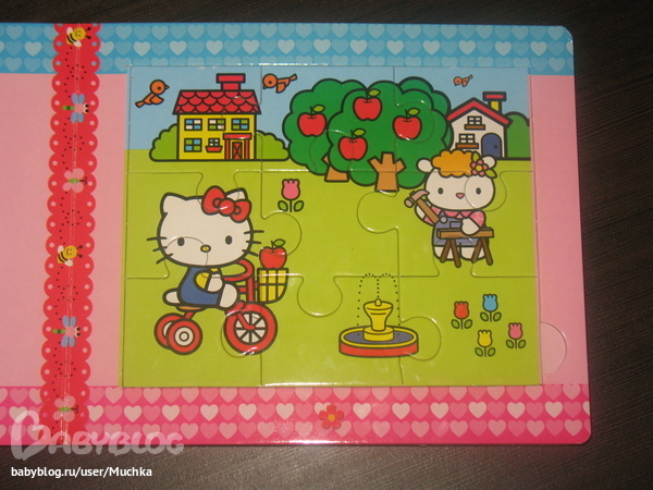 "Поиграй со мной. Хелло Китти". Четыре страницы с пазлами. Очень удобно - пазлы как в рамочке, не рассыпаются.