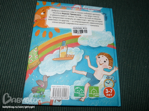 Ура! Приехали!))) Заказывала все книжечки на озоне по акции 4-я за рубль, приехали ооочень быстро, я даже не ожидала такой скорости)) в пт заказала-в пн привезли (в Нижний), сегодня только забрала. в общем я оооочень довольна! Платона не оторвать!))) но это в прочем как всегда)) мой фаворит-Айболит, на втором месте-Бармалей, на последнем-тараканище. прямо скажем, я не в восторге от последнего, скорее всего потому, что такие иллюстрации тяжело воспринимаются в полтора года (по крайней мере так считается)-слишком уж схематичные и непропорциональные, но они тоже имеют место быть. и по крайней мере, сглаживают "ужасы и жестокости" самого произведения)) так что читать и рассматривать - однозначно будем! ну а остальные 3 книги мне нравятся очень-очень и иллюстрациями и качеством самого издания (но я вообще фанат Клевера;)). размер книжек-чуть больше А5, сделала 1 фото в сравнении с Телефоном М-П.
