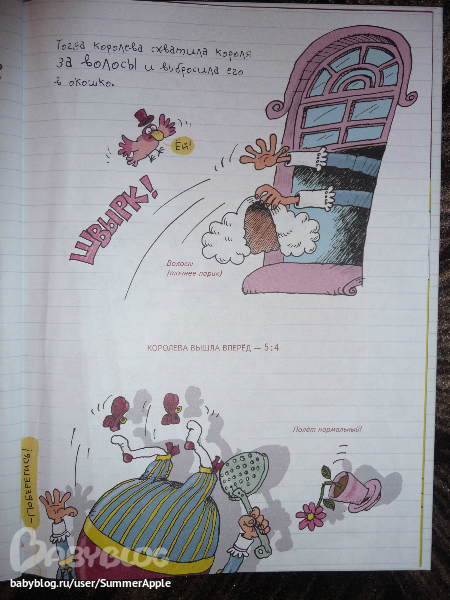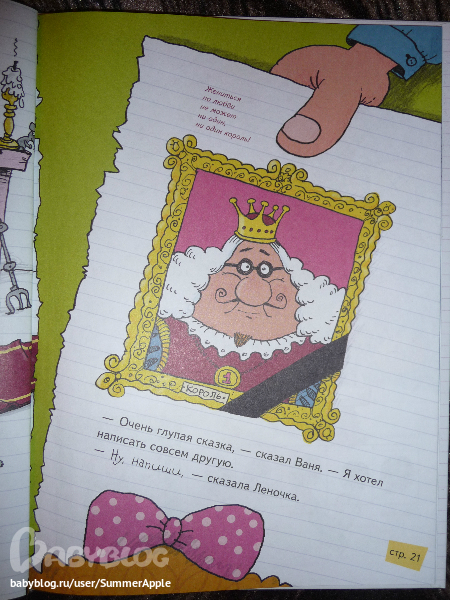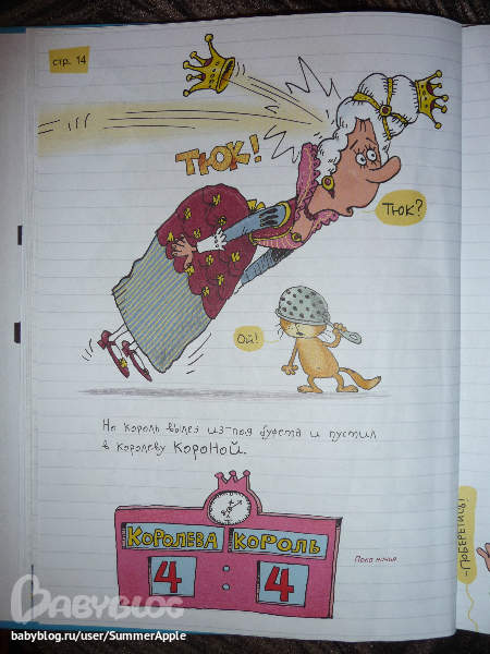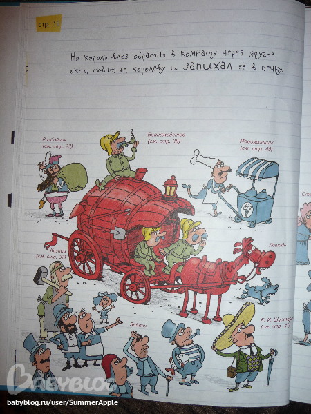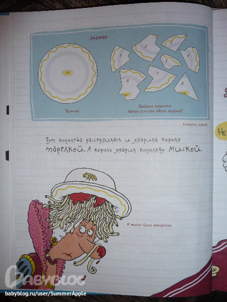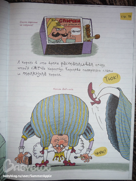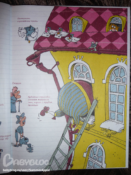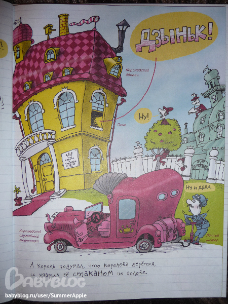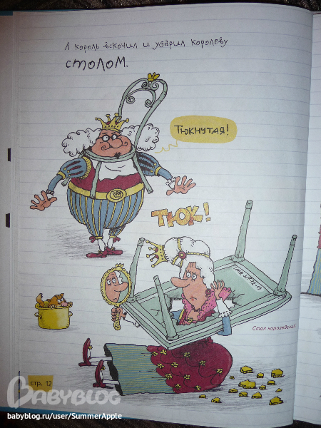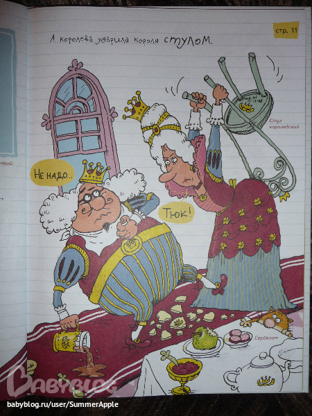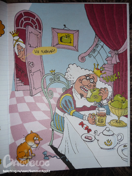 Почему? Во-первых, конечно, потрясающий юмор художника. Рассматривать каждую страничку можно до бесконечности. Перечитывать подписи типа "В миске были макароны", "Стол королевский инв.№72-12", "Тюкнутая" и хохотать, дрыгая ножками, для моего подозрительного чувства юмора - самое оно.