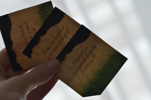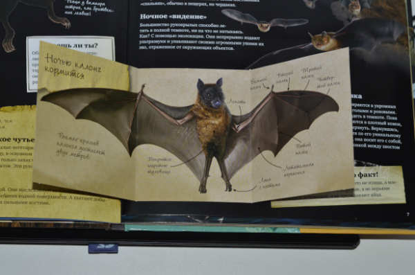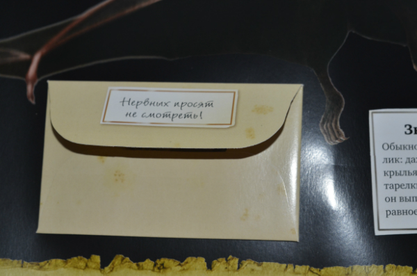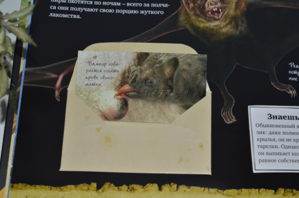 Это лежит в конвертике, показано как мышь-вампир сосет кровь...бррр, хорошо, что карточку можно убрать и малышу не показывать.
