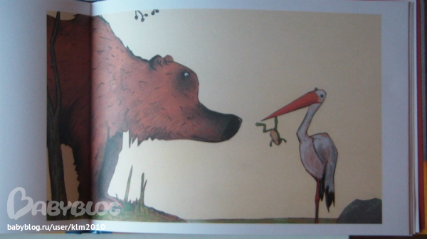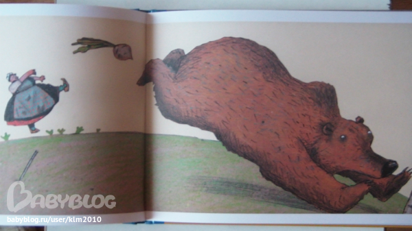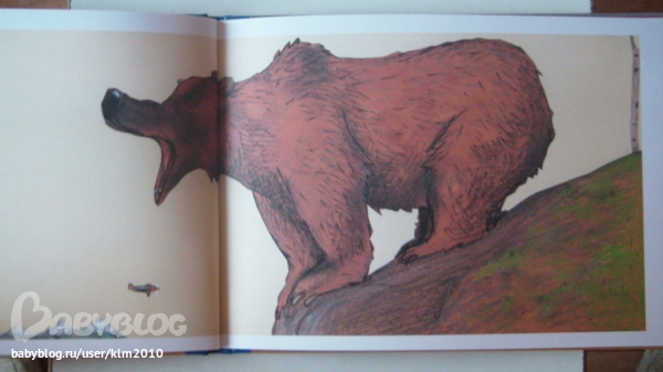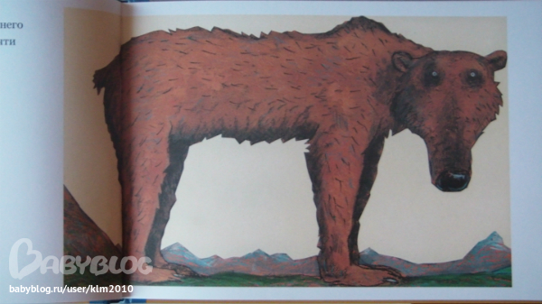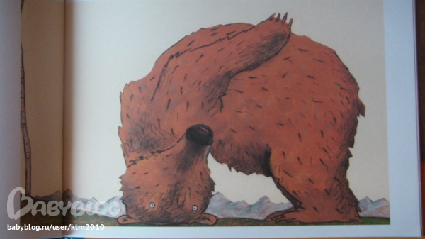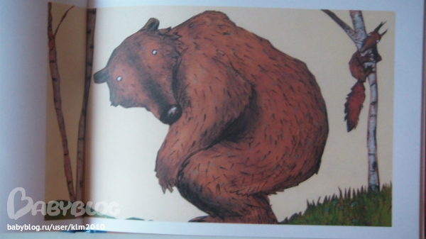 Мне не понравилась книга на первый взгляд, а теперь, я очень рада что мой ребенок настоял ее купить. Иллюстрации совсем не страшные, медведь очень милый, забавный и наивный. Книга сделана не так как мы привыкли видеть, формат А4, только перевернутый, как альбом для рисования. Текст достаточно крупный и его не много.