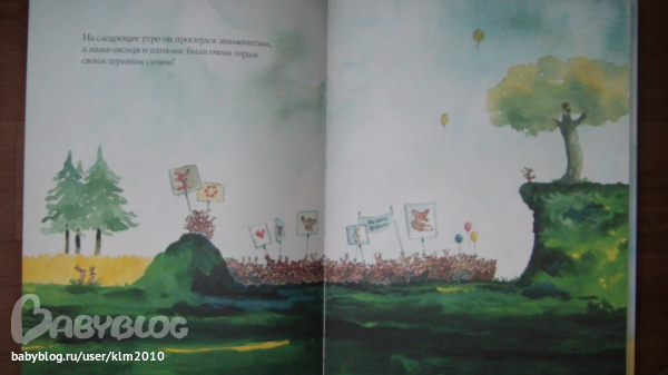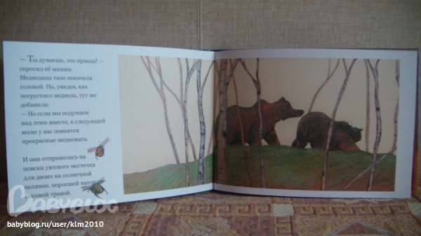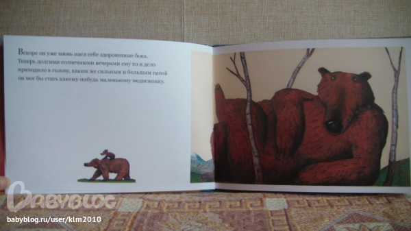 Мишка испробовал все способы и, разумеется, ничего у него не получилось. Но жизнь, которую некоторые так торопятся похоронить в присутствии маленьких детей… так вот, жизнь — мудра. И если долго смотреть на красивое облако, которое плывёт по небу, кто-то вдруг пробурчит тебе прямо в ухо: «Ты тоже так сильно хочешь малыша?» А потом «обворожительная медведица» предложит «подумать об этом вместе», и всё станет хорошо, просто замечательно, потому что «они отправились на поиски уютного местечка для двоих на солнечной полянке, поросшей высокой травой».