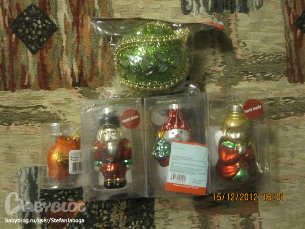 Новогодние игрушки! И не одна, не две, а как с придыханием сказал Кирилл - МНОГООООО:) Особенно понравился нам обоим Щелкунчик - а уж как рада будет наша елка, получившая в этом году столько красивых аксессуаров для своего зеленого платья!!
