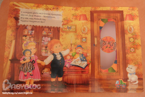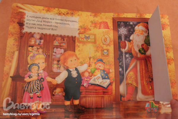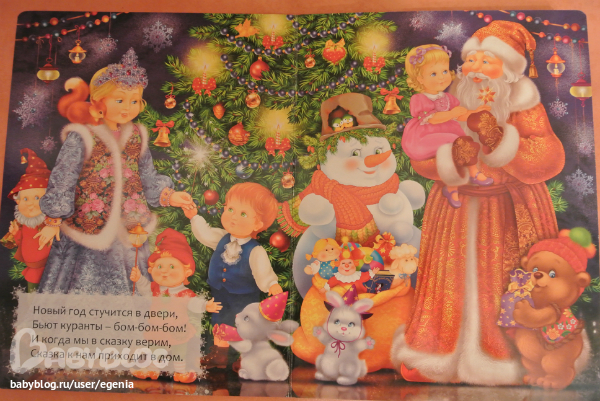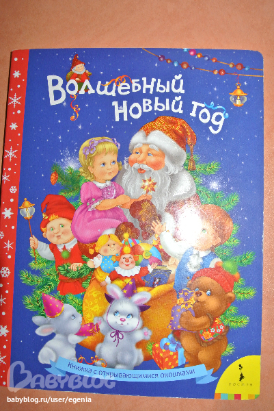 Волшебный Новый Год - у нас эта книга будет встречать уже 3-й Новый Год, а стих из нее малый до сих пор рассказывает и он его любимый! Книга очень добротно сделана, плотные катронные страницы, открывающиеся окошки, есть все самое необходимое для знакомства малыша с Новым Годом - Дед мороз, снегурочка, снеговик, елка. На каждого по страничке выделенно и четверостишье.