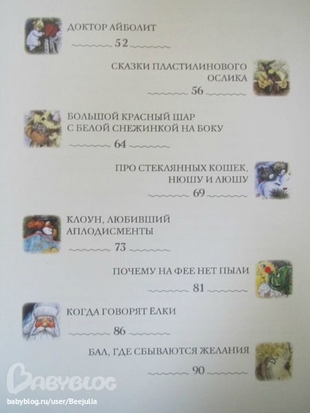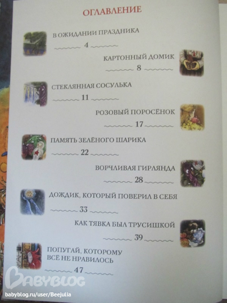 ОХ и АХ и ВОСТОРГ! Так мне эта книжка понравилась! Читали перед сном и так мы ждали вечера, чтобы окунуться в волшебство этой книги! Все игрушки на елки имеют свою душу, свою историю. Игрушки устраивают бал и ждут Нового года! Я когда читала эту книгу сыну все время вспоминала как мама доставала картонную коробку с елочными игрушками, а там каждая игрушка была завернута в вату и такой особый запах и так аккуратно мы развешиваем игрушки, я снова маленькая девочка! Пока мы с сыном делаем игрушки сами, у нас нет стеклянных игрушек, но думаю, когда ребенок подрастет, то мы тоже соберем свою коллекцию игрушек и будем зимними вечерами слушать их истории)