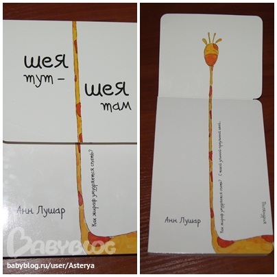 Начну с той, которая первой привлекла внимание дочки) Это милая книжечка про трудности жирафьей доли "Шея тут - шея там".