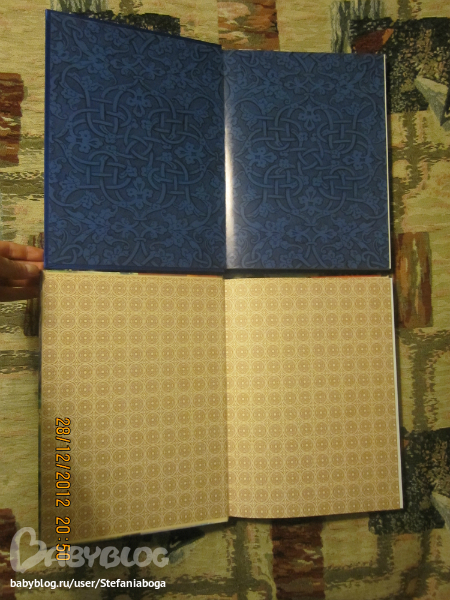 Форзацы - в подарочном варианте они насыщенно-синего оттенка. И - да: бумага в подарочном варианте мелованная, а в обычном - офсетная.