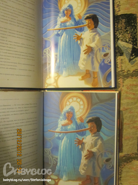 Так, с появлением у нас дома интернета и с началом моего знакомства с Ридом, Озоном и Лабиринтом, я узнала, что книга эта вышла в двух видах - в обычном (как у меня) и в подарочном. Подарочный вариант отличался яркостью и живостью цветов, и более верной цветопередачей, в то время как имеющийся у меня экземпляр страдал затемнением и размытостью иллюстраций. Отличное - вовсе не враг хорошего, если дело касается книг, и я приняла решение во что бы то ни стало заполучить себе подарочный вариант. Сегодня моя маленькая мечта сбылась, и я представляю вам на суд небольшую сравнялку двух книг.