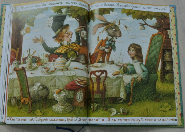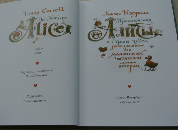 Но тут узнаю, что Речь переиздала Алису для самых маленьких с Базановой... Ну, думаю, куплю! Подарю маленьким племяшкам... Купила. 2 дня честно книга была в полиэтиленовой спайке... Думаю - подарю без пленки, сниму ее. Сняла, начала рассматривать иллюстрации... Я каюсь - книгу оставила себе:))))))