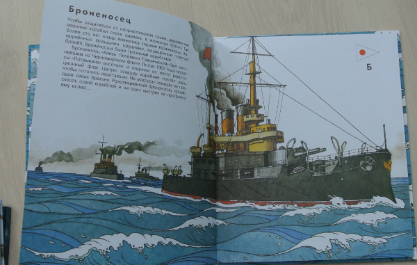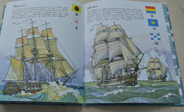 Говорят, что это переиздание старой книжки. Не могу подтвердить/опровергнуть, т.к. в детстве не особо интересовалась кораблями:))) Это сейчас я-мать 2 пиратов обязана отличить кубрик от трюма. И меня никаким бушпритом не напугать. И очередная корабельная книга никогда в нашем доме не будет лишней