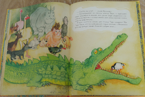 Сама сказка всем известна. Крокодил не чистил зубы. Ну и конечно же в один прекрасный момент зубная боль дала о себе знать. А отважная крохотная птичка не побоялась помочь столь свирепой рептилии.