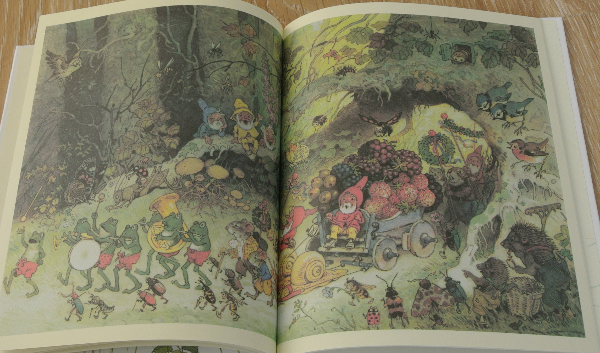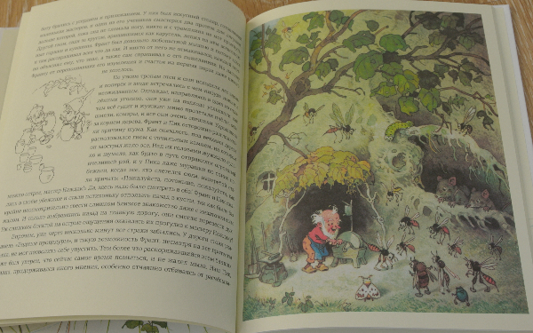 Сразу если придираться - в этой книге не совсем удачные иллюстрации.Т.е. сами иллюсстрации замечательные - настоящие немецкие гномы! Но у меня создается впечатление легкой замыленности что ли. Ощущение копии с сотой копии:)). Но это если совсем прям предираться. Будь книга больше форматом, может было бы лучше?... Потому что там столько небольших нюансов!!! хочется все рассматривать и рассматривать, а книжка небольшая:))