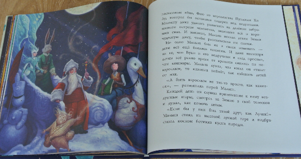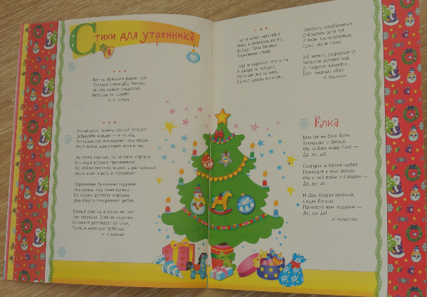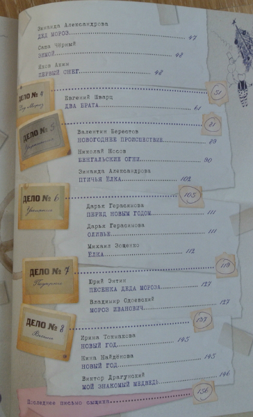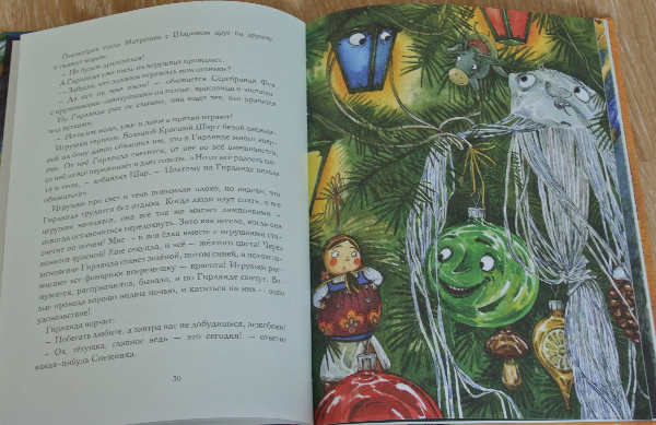До покупки у меня было двоякое ощущение. С одной стороны не нравится Лабиринтовская меловка (читать по вечерам неприятно). И иллюстрации местами так себе... А с другой стороны - хорошая идея объединить новогодние сказки, стихи и рассказы с помощью детективного рапсследования. У нас (не кидайтесь тапками) до этого момента не было вообще ни одного новогоднего сборника. Многие девочки показывали свои книги и я радовалась за них. А у самой как-то ну не тянулась рука к покупке. То иллюстрации слишком слащавые, то содержание на более младший возраст (а я ж себе постоянно даю установку не покупать уже книжки, которые переросли. Потому что их все издают и издают, а мальчики растут и растут, а денег не хватает на СЕГОДНЯШНИЕ книги:))) надеюсь ясна мысль. в общем, хочу, но терплю). Да и зимних книг с одной сказкой/историей у нас достаточно (все собиралась показать в декабре отдельным постом наши зимние книги, да видимо не успею до НГ). А тут Матюха попросил почитать 12 месяцев, Рома захотел новогодние стихи выучить.... Да еще такие приятные отзывы про ЭТУ книгу. В общем, приобрела и не жалею.