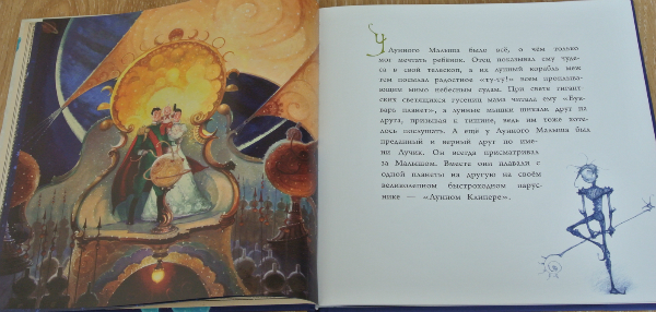 В одном из предыдущих постов я писала, как Роме понравилась книга "Хранитель снов" Инглена. А началось все с того, что Ромаха подумал о мультике с таким же названием. Где есть зубная фея, пасхальный кролик, санта клаус, песочный человек... (сорри, с мультом практически не знакома. краем уха слышала, пока мальчишки смотрели открыв рот). А позже на просторах инета прочла, что мультик по мотивам книги Джойса "Ник Северянин и битва с Королем кошмаров". Общего мало, но по мотивам. А Лунный малыш - это типа по мотивам Ника Северянина, как я понимаю:)))) Сорри за сумбур. Вообщем какой мотив покупки - мне понравились иллюстрации. И потом небольшая книжка по сравнению с Ником. Но теперь точно знаю, что после такого мальчишеского восторга Ника Северянина куплю обязательно.