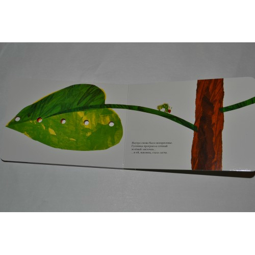 Кортонные страницы, яркие рисунки, интересный сюжет и оформление (страницы с дырочками, которые прогрызла гусеница) и очень удобный формат книжки для малышей.