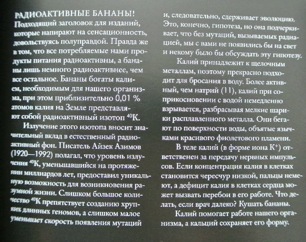 Хочу именно с этой книги начать наше пополнение. №1 во всех отношениях. Я уже говорила, что в школе очень любила химию. И увидев анонс в Лабе подумала именно о себе, а не о детских желаниях:)). Но не думаю, что меня совесть будет долго мучить - благодаря такому слитку в будущем моим мальчишкам химия не будет казаться "скучной и унылой наукой". Ее не надо учить, ее надо понимать и посмотреть вокруг:)) Именно так, очень популярно автор предлагает взглянуть на окружающие нас вещи. Меня подкупила сама идея этой книги. Прекрасные макро фотографии с образцами элементов, сделанные самим автором, как я понимаю. И как он пишет - все предметы, которые мы увидем в этой книге, есть у него в офисе. Не забывая колко и с отменным чувством юмора отметить: "...за исключением одной вещи, конфискованной ФБР". Вообще стиль повествования мне ооооочень понравился:))). Здесь не просто сухие факты, здесь часто характеристика той или иной вещи переплетается с историческими фактами. Кроме того читая часто так и представляешь улыбку Грэя. Именно так нам учитель химии рассказывал о применении той или иной кислоты и соли. Как щас помню: "...Вот вы, любезные, моетесь в ванной с мылом. И ужасаетесь, сколько же грязи смывается с вас, милейшие. Вы видите эти хлопья грязи и клянетесь, что впредь мыться будете чаще. Заблуждаетесь, драгоценные. Не надо так часто мыться, это не грязь совсем. Давайте, любезные, проведем небольшой опыт..."