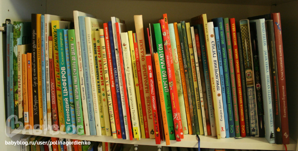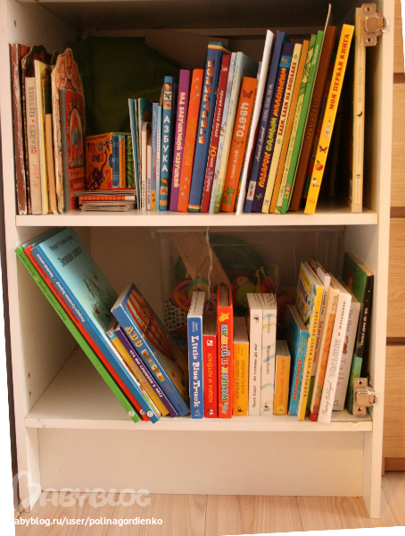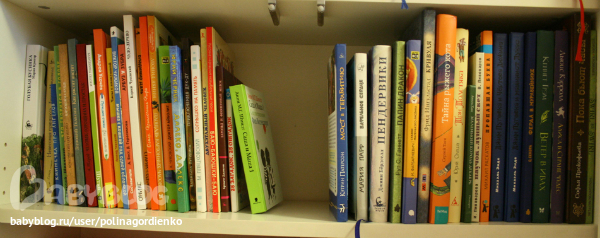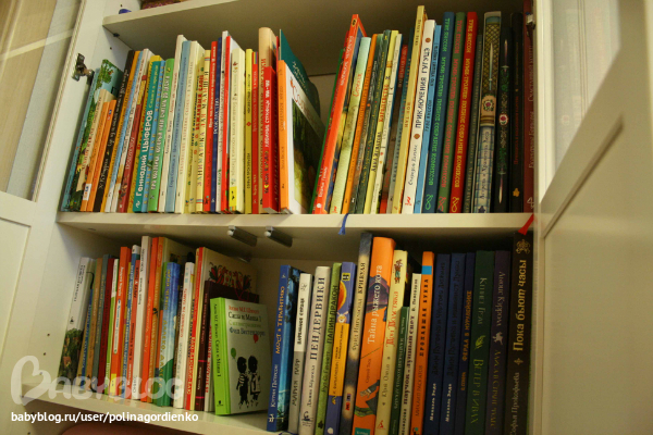 Так выглядят полки с книгами на вырост и теми, что я купила себе (хотя и дочке когда-нибудь пригодится!):
