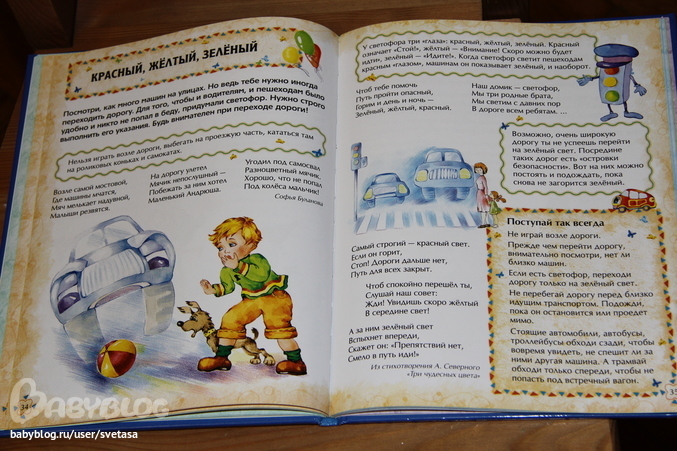 В каждой теме текст чередуется со стихами и в конце вывод: "поступай так всегда". На возраст от 2,5 (можно и раньше).
