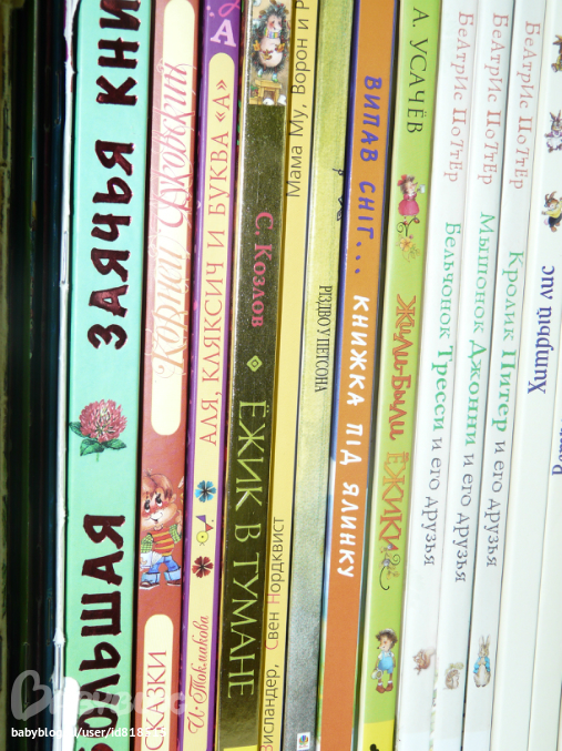 Хочу еще написать, какие книги особенно отметил мой ребенок. Любовь к книгам у нас началась с Женевьевы Юрье, истории про кроличье семейство. Да, я читала ребенку с 3х месяцев, но именно так, что он сам потянулся, с любовью и настойчиво, все кролики :-)))). Потом Беатрис Поттер, любимый кролик Питер. Он даже ходит и разговаривает с его изображением. Потом очень понравилась "Марфа" Генадия Спирина. Чуковский "доктор Айболит". Ершов "Конек Горбунок". И сейчас вот уже как пару вечеров подряд читаем "Маугли". При чем, я не собиралась его ему читать, брала на вырост и долго не соглашалась. Но он просто упрашивал. И сейчас, не смотря на то, что все ж сложно ему, мы продолжаем читать и он настаивает. К остальным книгам так же возвращается, просто отметила самые любимые.