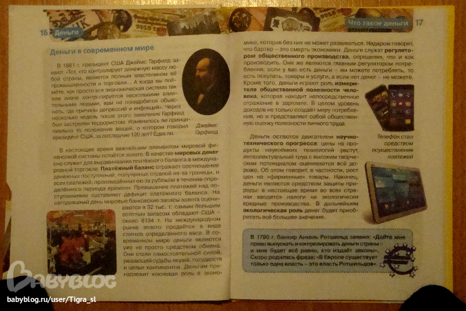 Замечтательную книгу от РЖ я обязательно выучу наизусть и буду читать сыну. Стиховорение мне нравится очень-очень, хочу чтобы осталось у него в памяти А вот рисунки не очень понравились. Пусть сам решает смотреть или нет. Ну и новая энциклопедия от Росмэн Деньги. Вот несколько разворотов