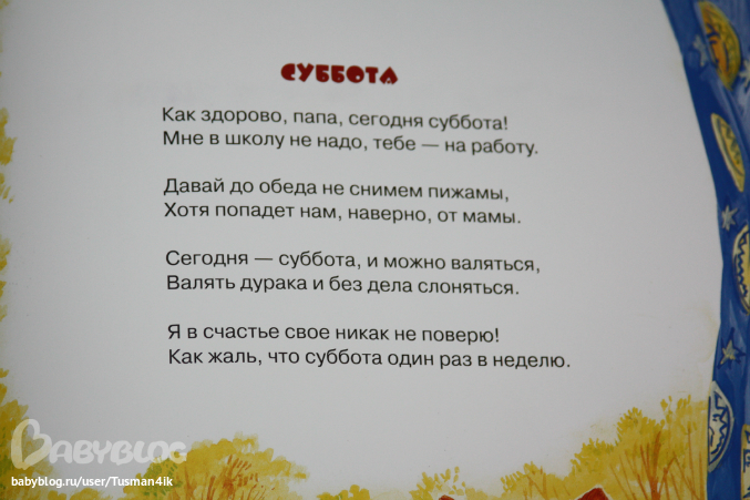 а зацепил только один стих, он для меня жизненный, пока у нас был только один ребенок, а у моего мужа выходные, они с дочкой частенько так зависали в кровати, два сплюхина)