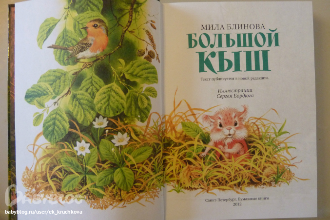 приехал ко мне сегодня мой заказик из Лабиринта, всего одна книжка ,но зато какая "Большой кыш " - Милы Блиновой с иллюстрациями Сергея Бордюга. Издательство "Бумажные книги" Санкт-Петербург ,тираж 5000экз, отпечатано в типографии "Премиум пресс" (СПБ).