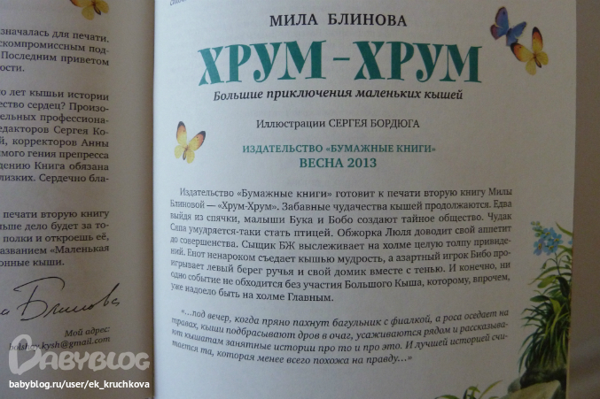 В конце книги написано о выпуске второй книги милы Блиновой "Хрум - Хрум",ну чтож будем ждать....