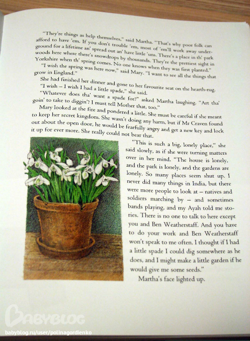 И как раз сегодня мне подруга привезла эту книгу из Америки с невообразимо прекрасными иллюстрациями Инги Мур. Хоть эти рисунки не раз уже частично выкладывались в сообществе, я решила сфотографировать книгу именно с точки зрения того, как постепенно садом завладевает весна. Кто хочет, может присоединиться и окунуться в наступление весны со мной. И не забудьте написать, про свою самую весеннюю книгу!