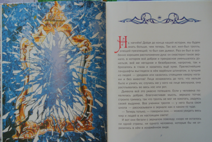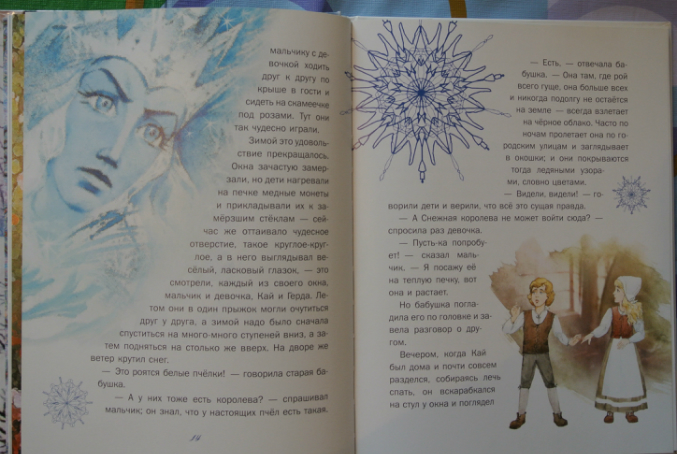 Книга наша на все 100, Снежная Королева похожа на Снежную Королеву с мультика, иллюстрации на каждом развороте, крупный текст, нет никаких рамочек и ничего не отвлекает от книги. Иллюстрации не забивают текст, не отвлекают внимания только на себя, гармонично смотрится все. Формат очень хороший. В общем мы довольные-довольные!!!!!!!